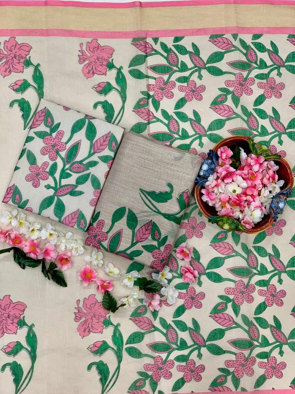 Saree Fabric: Premium Linen Cotton with beautiful digital print