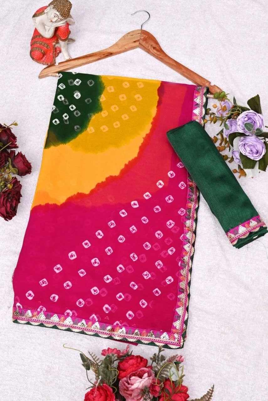 Saree Fabric : georgette with mill printed sarees design
